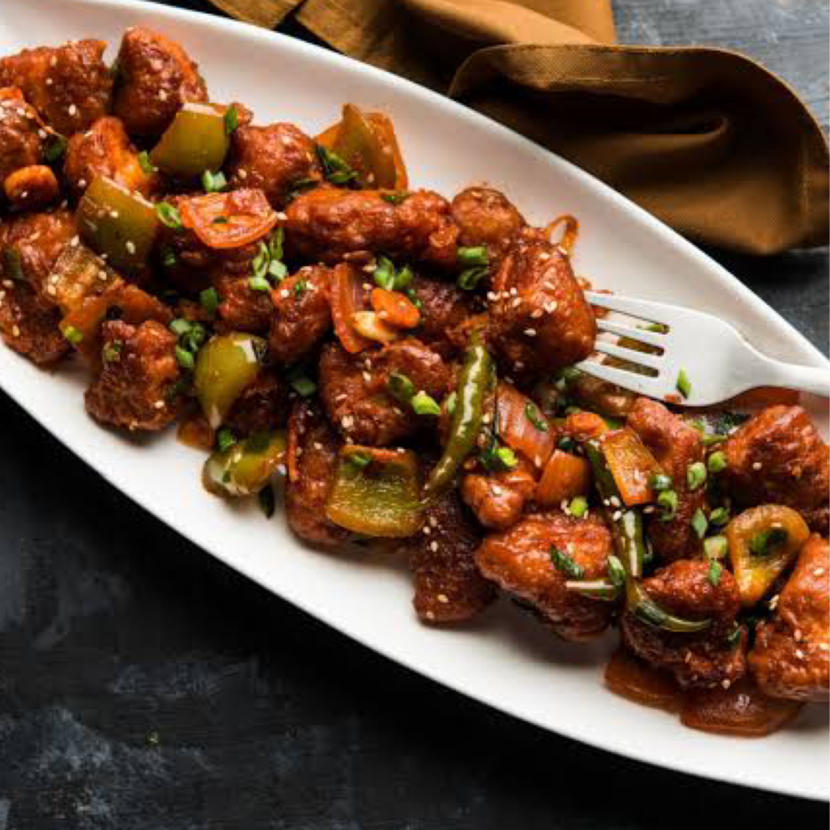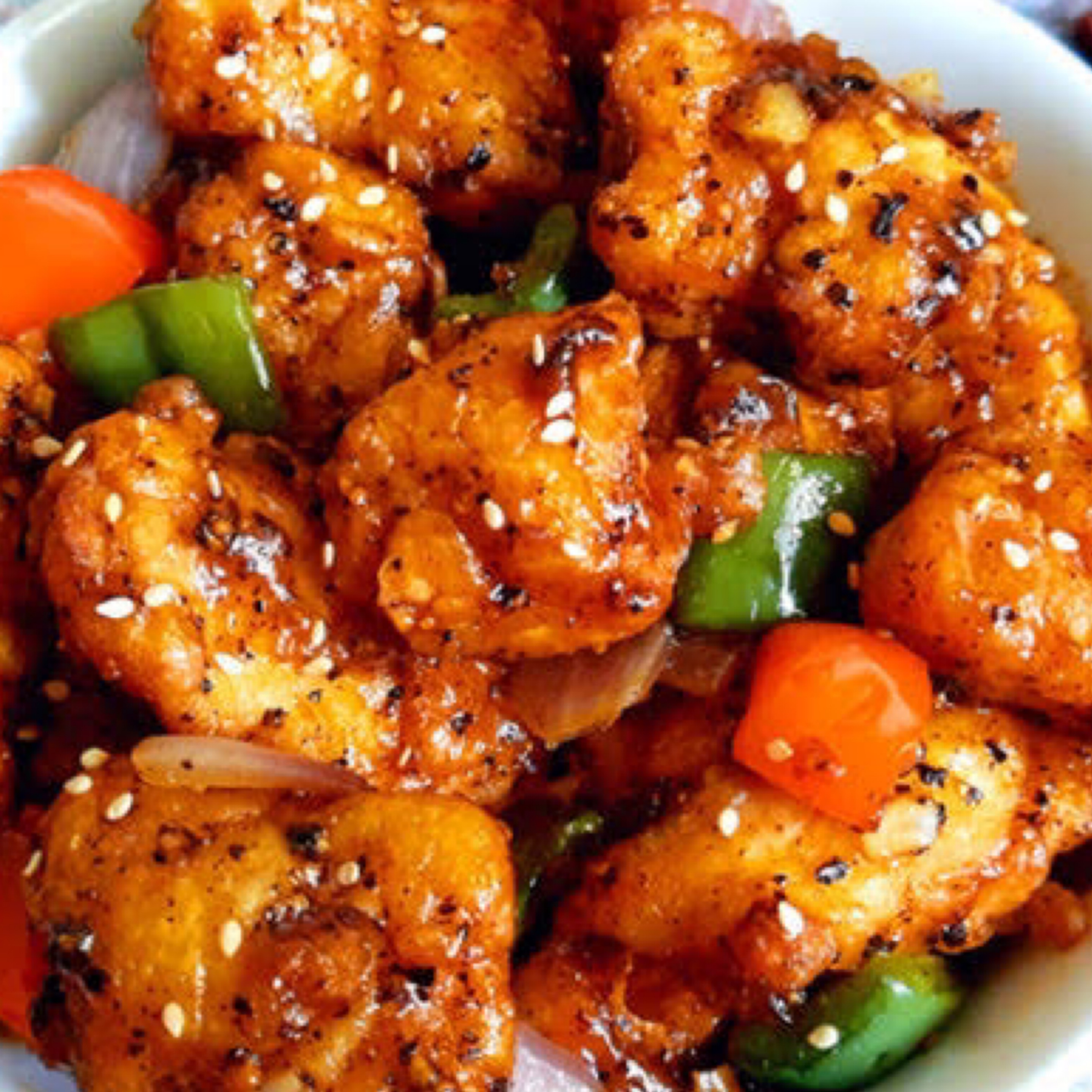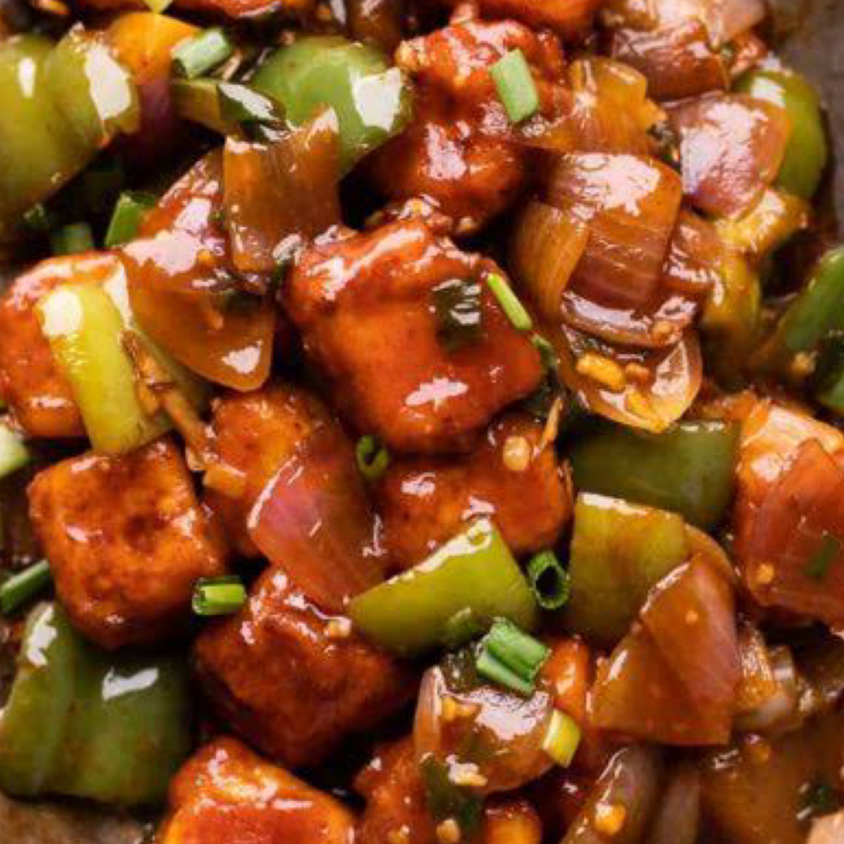 Batter fried Indian cottage cheese, tossed in Manchurian sauce