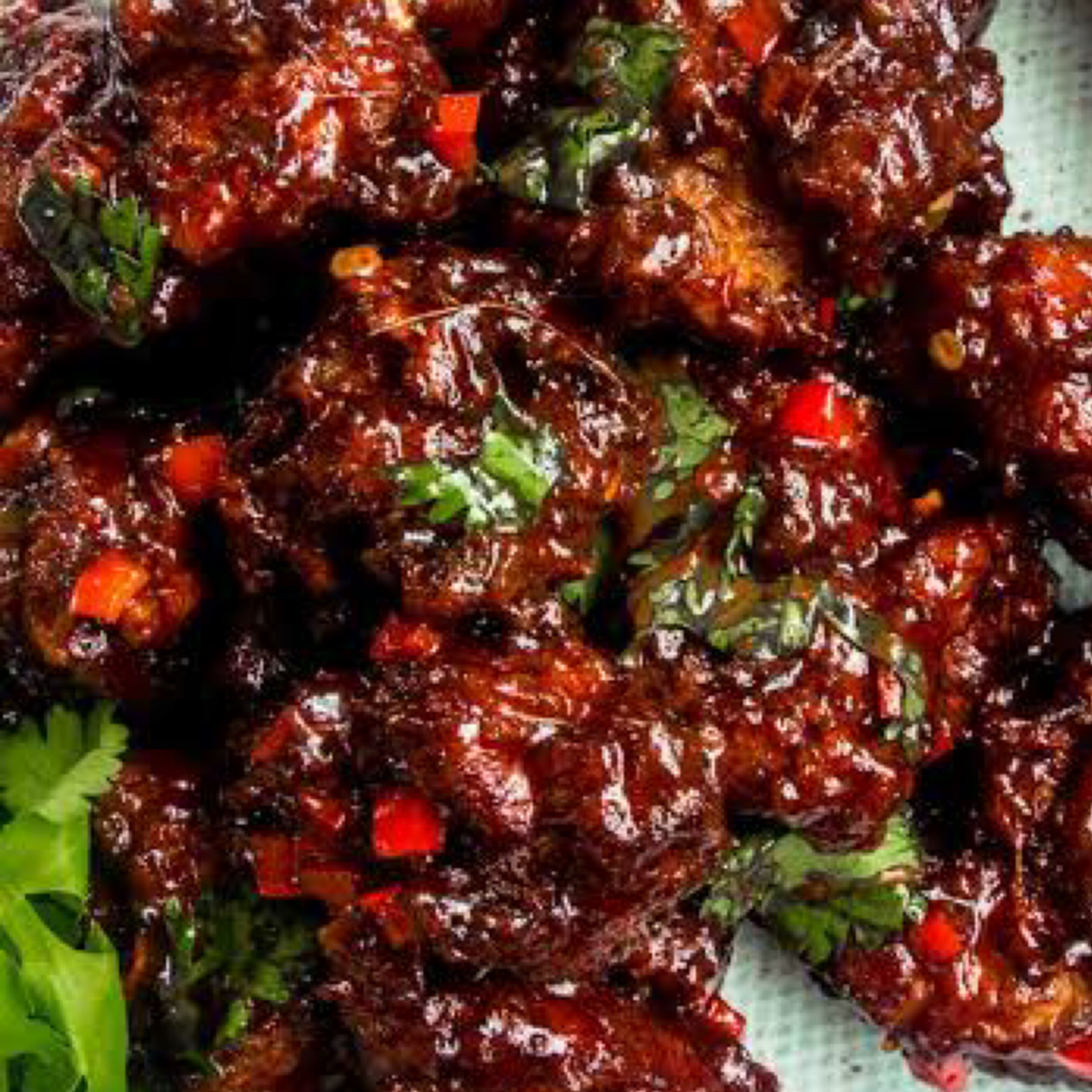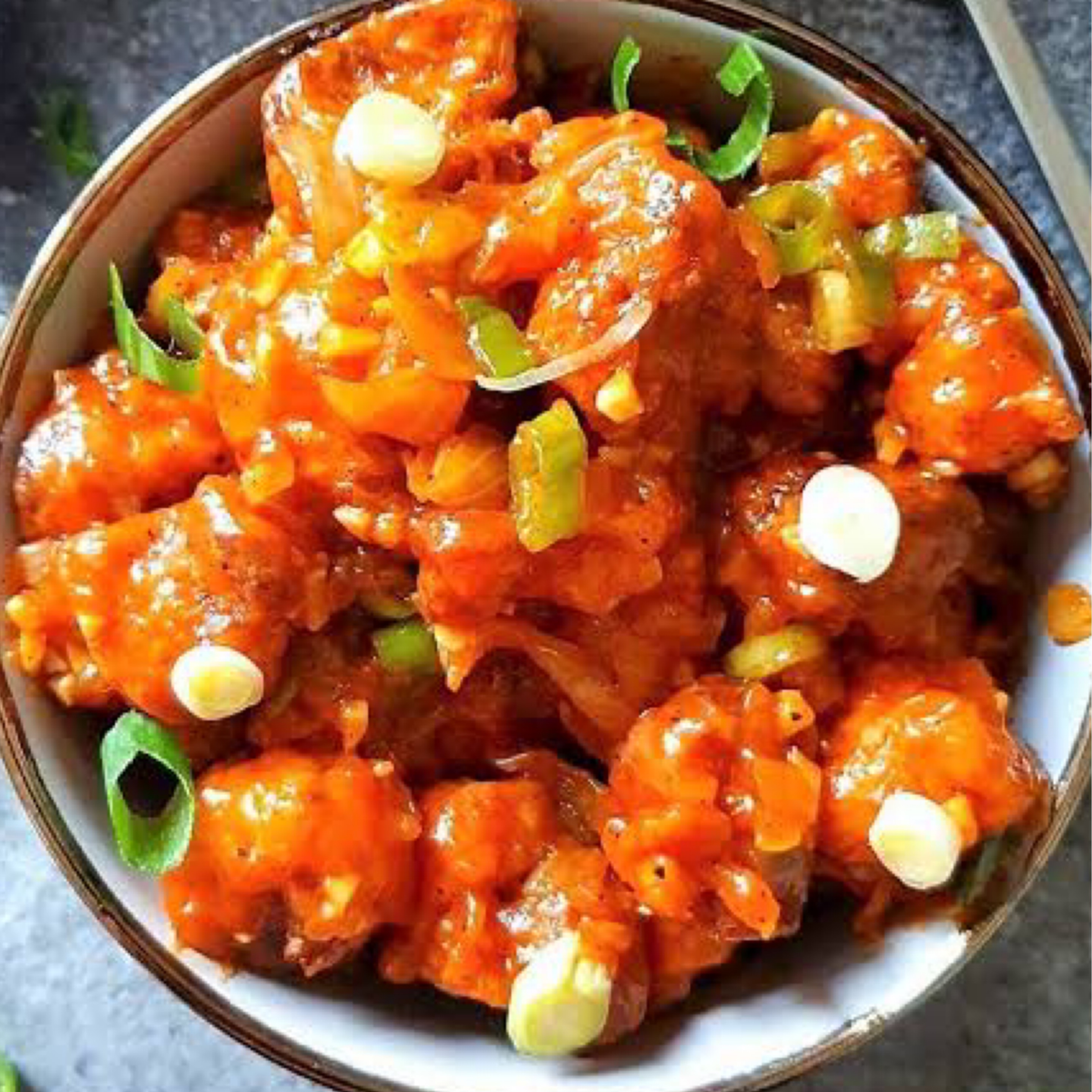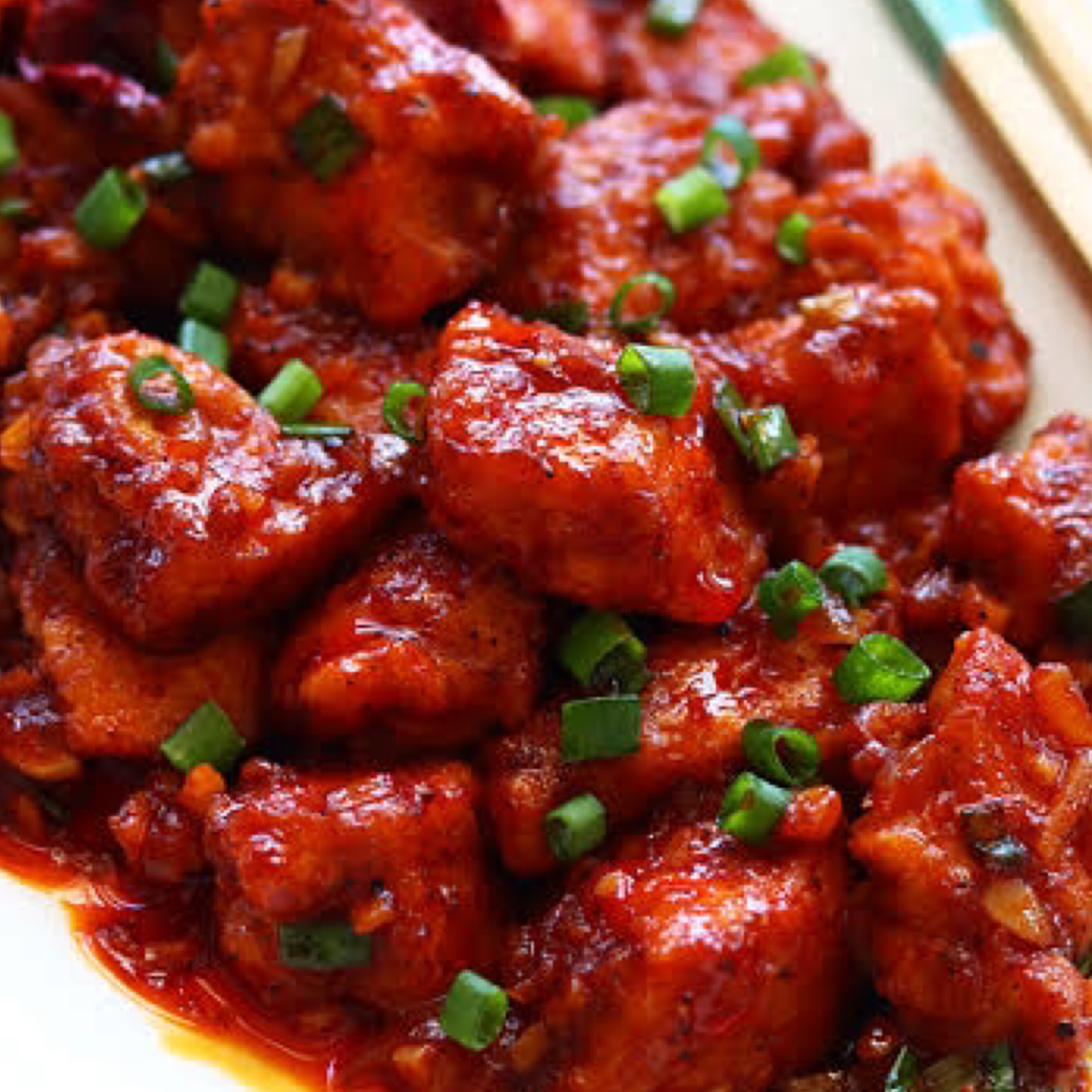Batter fried Indian cottage cheese, tossed in Manchurian sauce