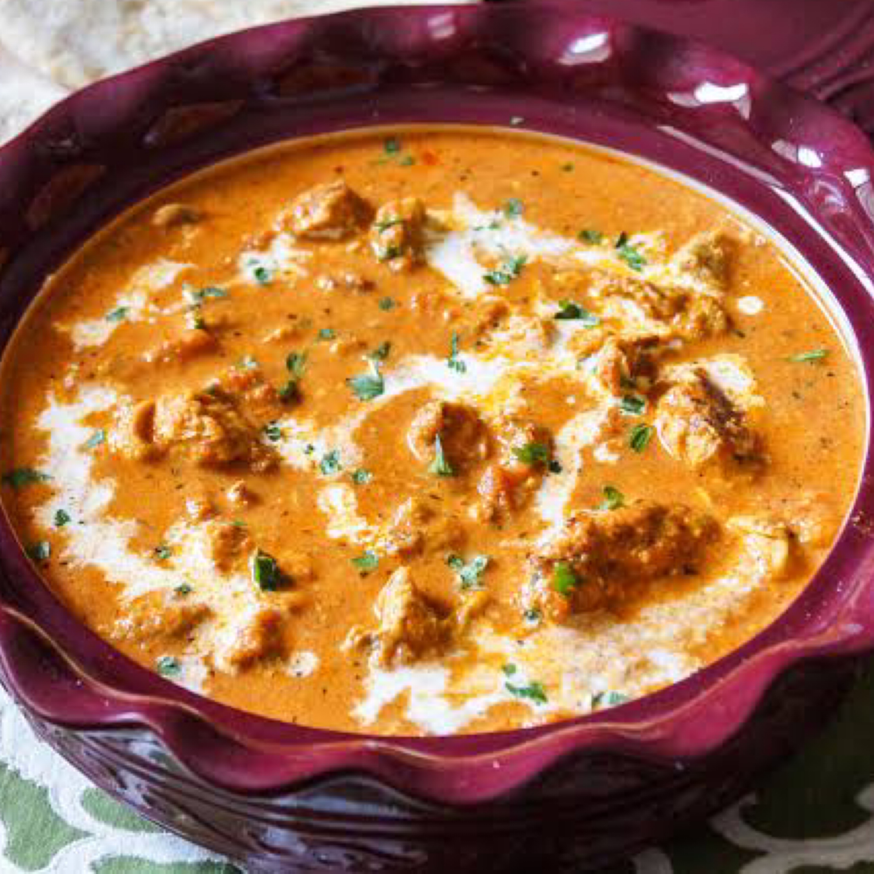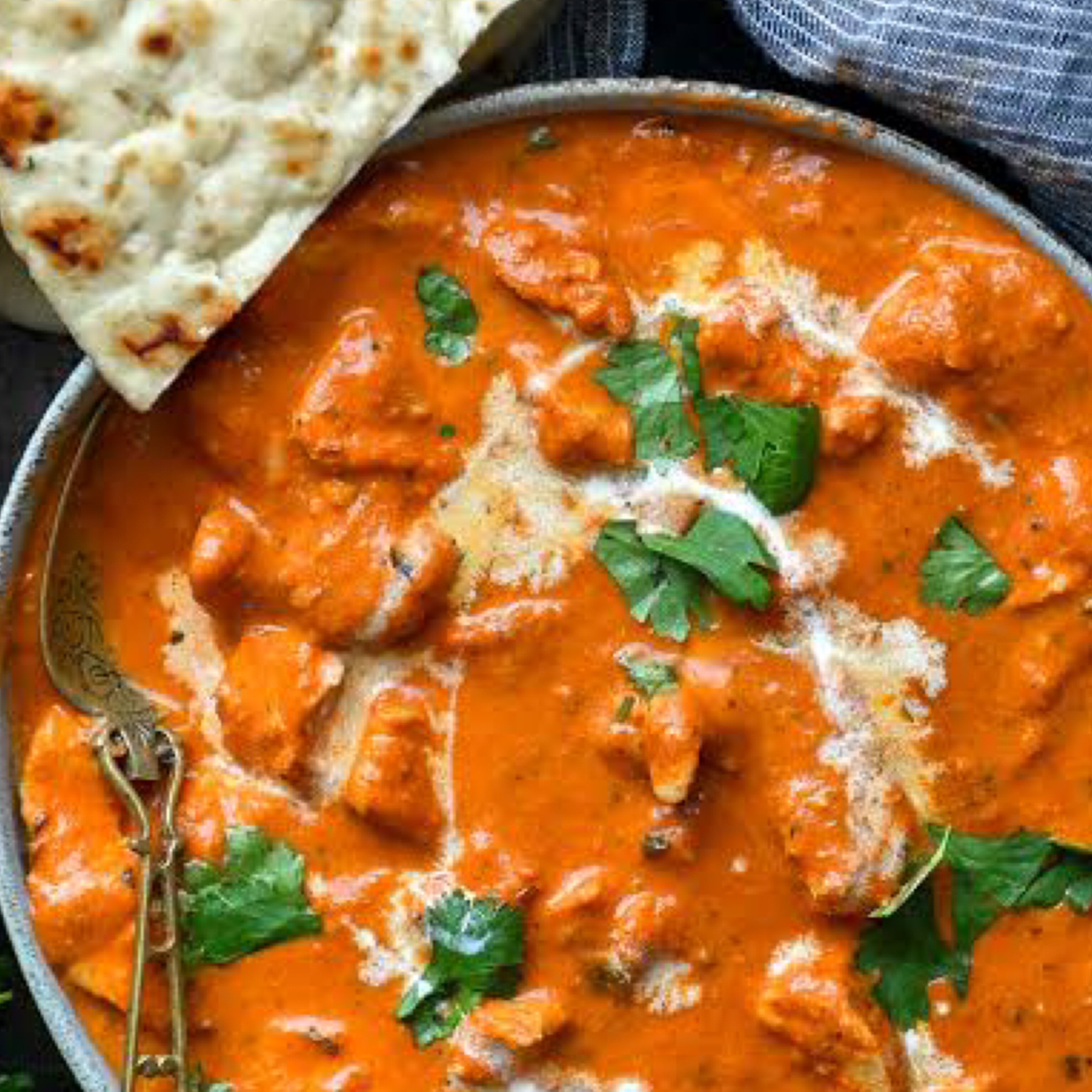 The Heart and Soul of Indian cuisine, tender pieces of chicken marinated overnight, part-cooked in a clay oven and simmered in a silky tomato sauce