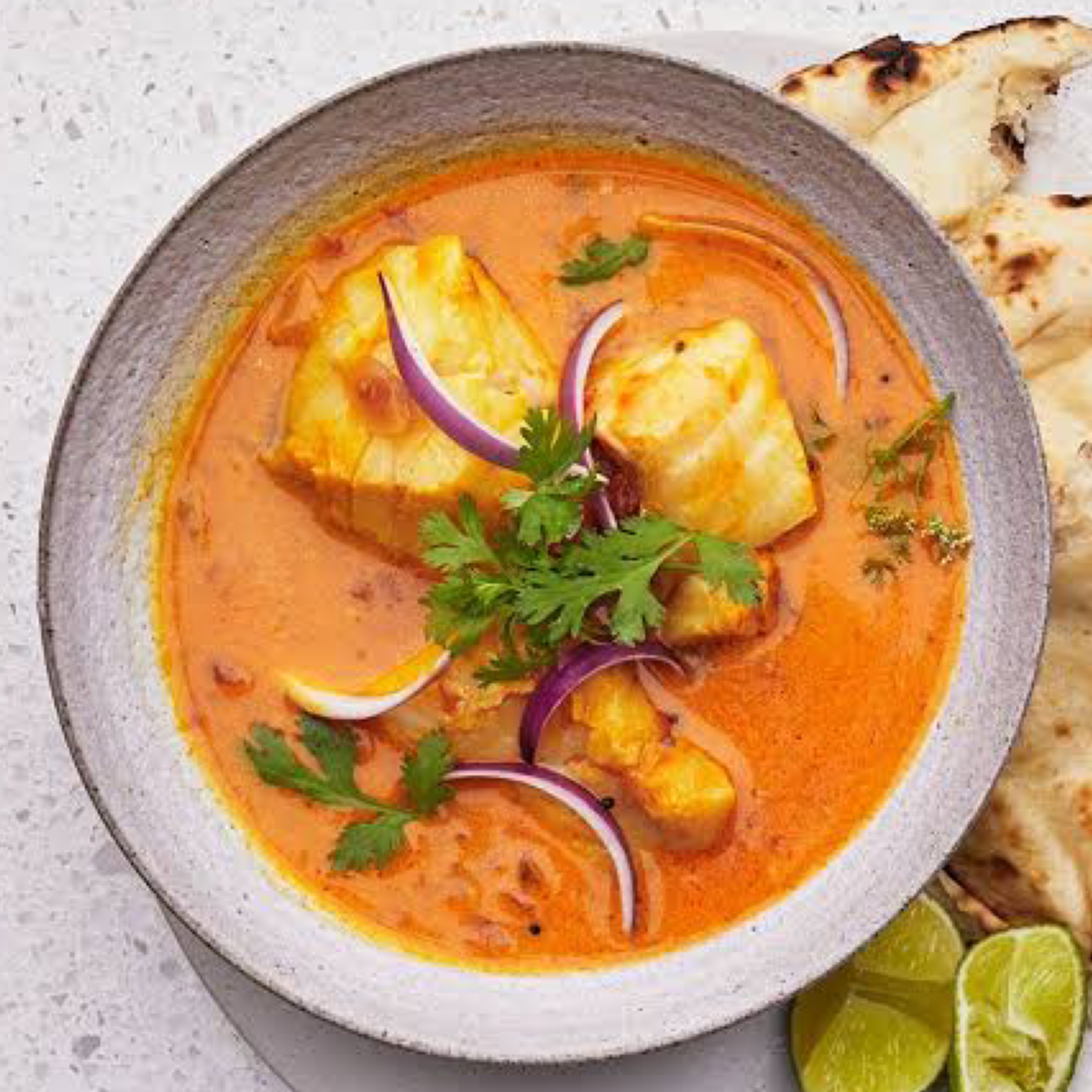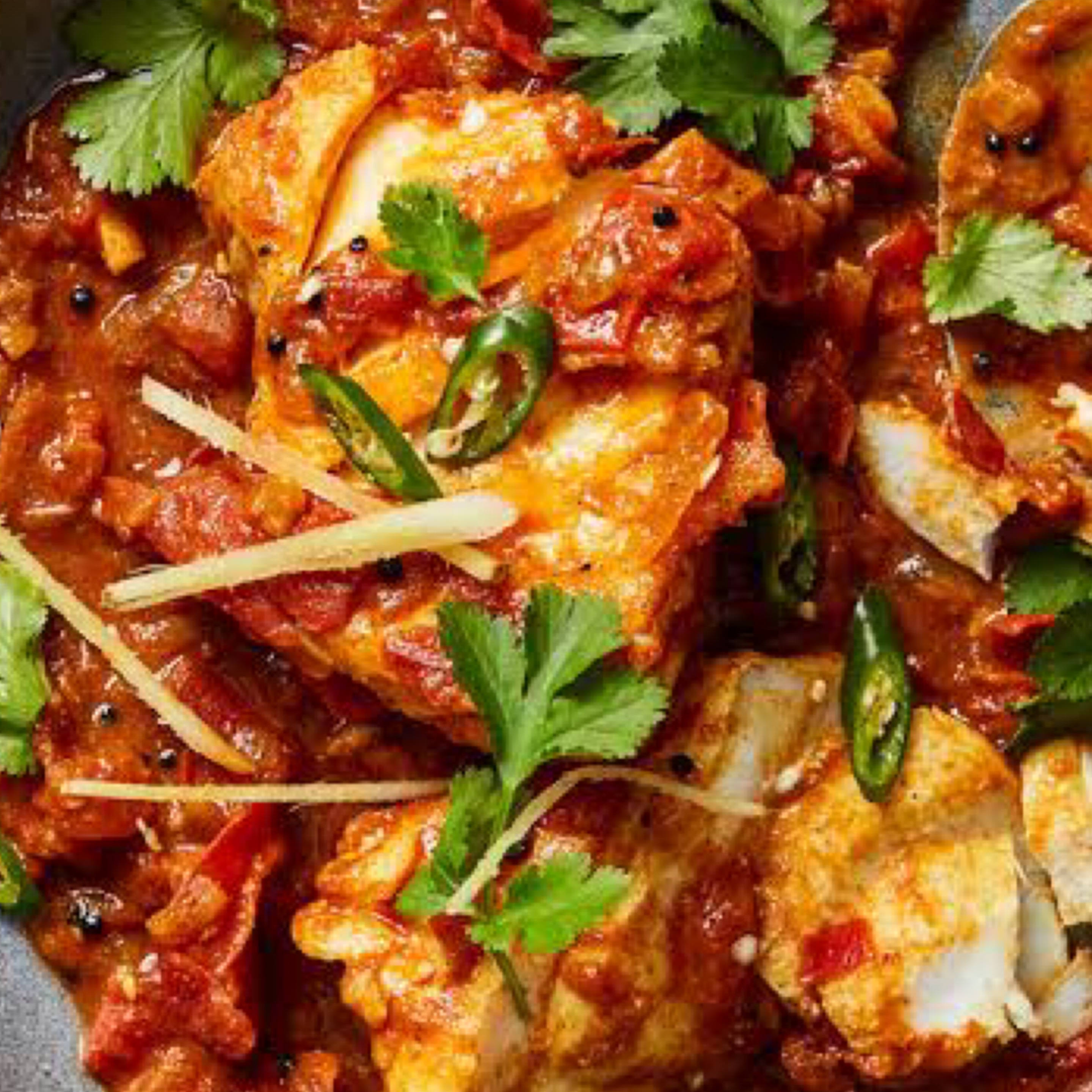 Fish simmered in a vindaloo-flavoured sauce