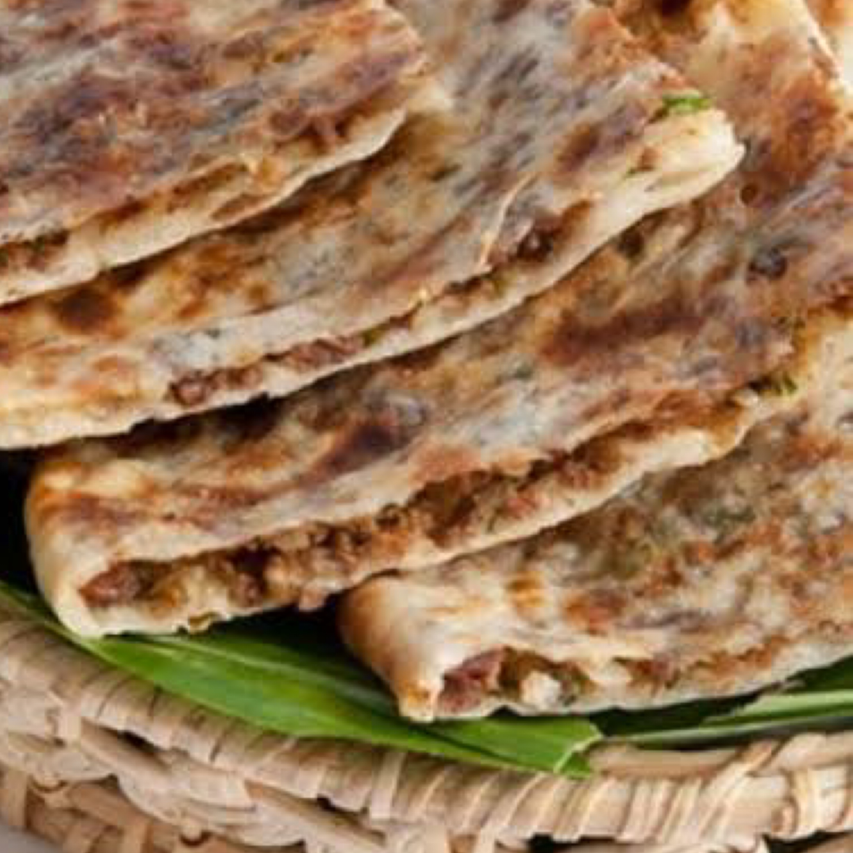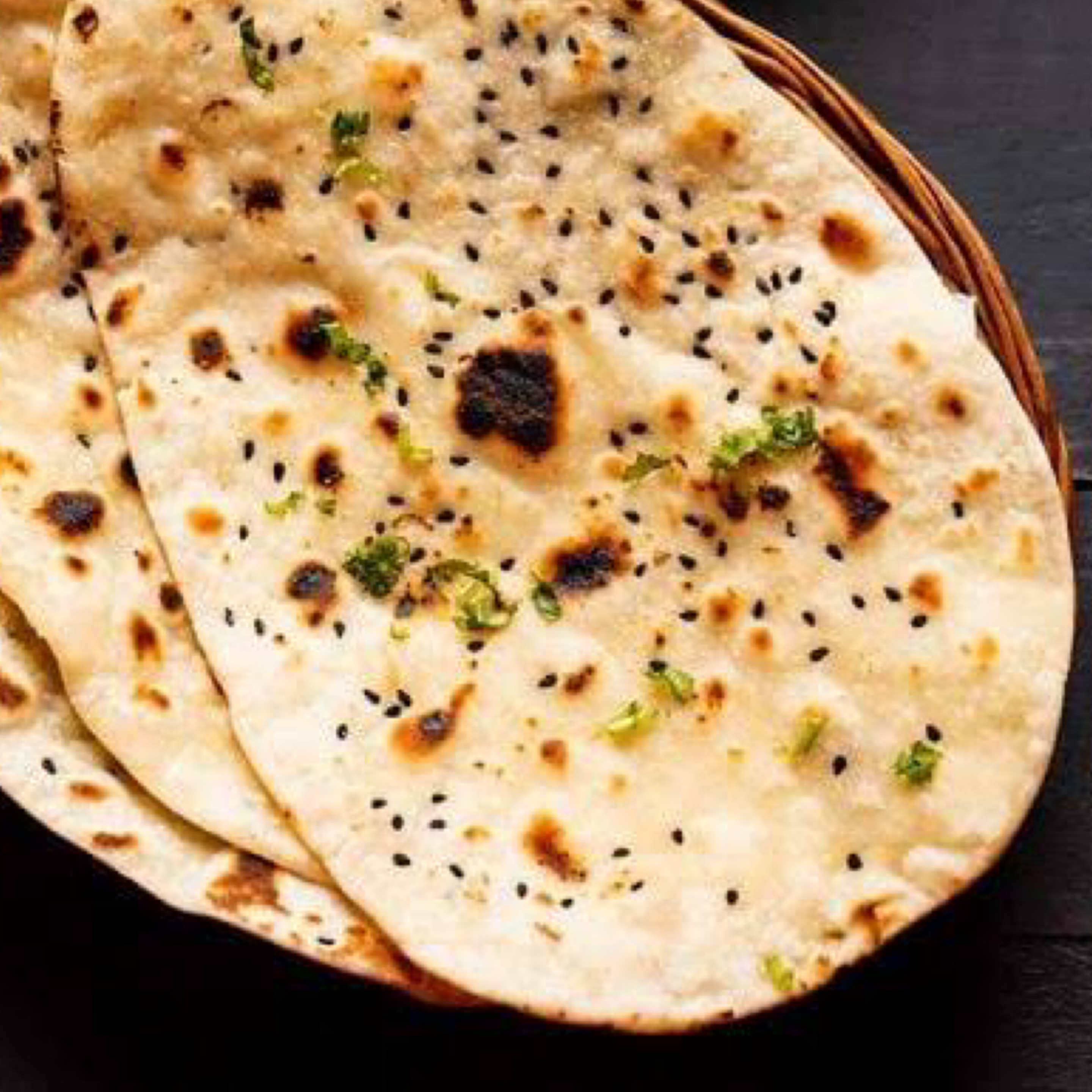 Naan stuffed with mince meat, spices & herbs.