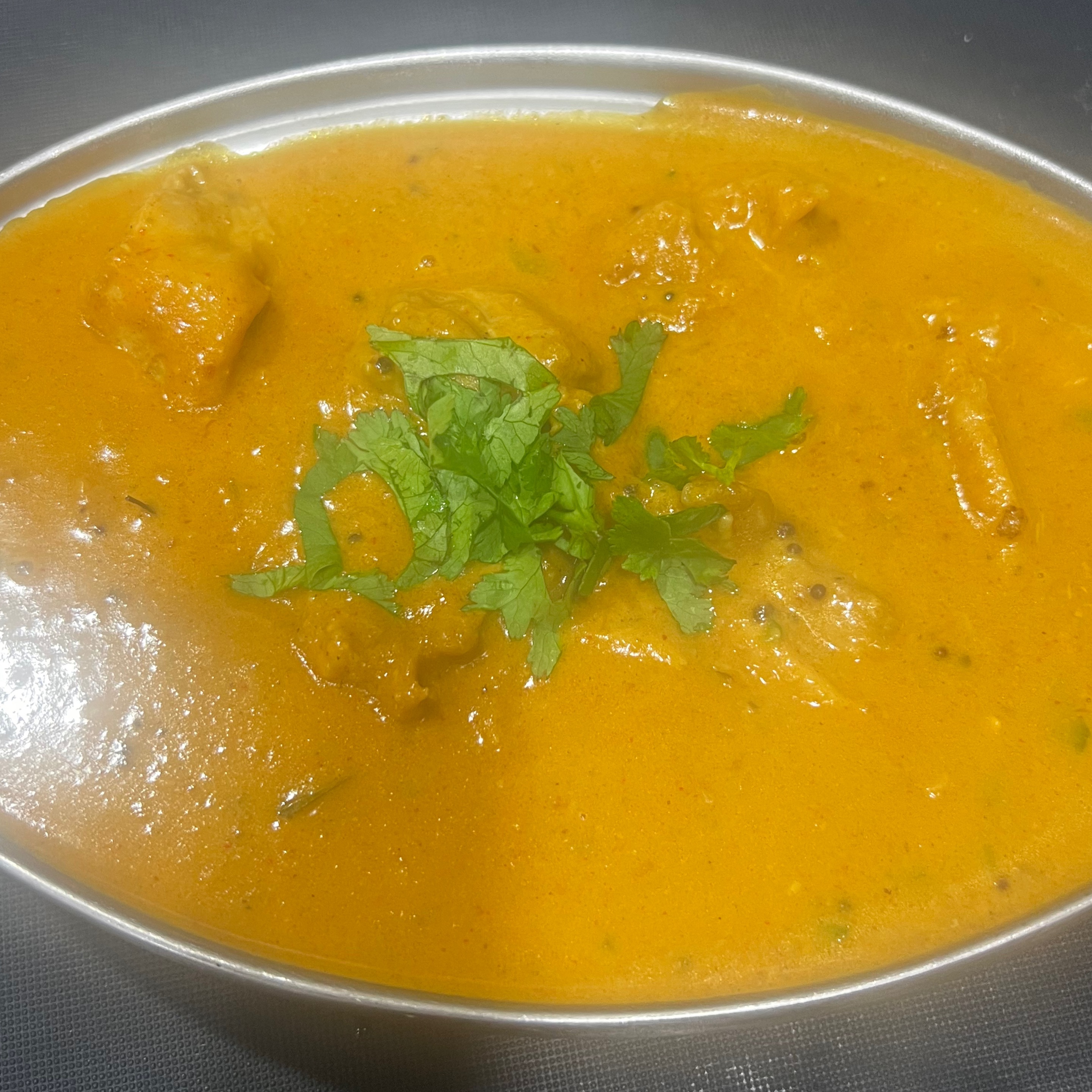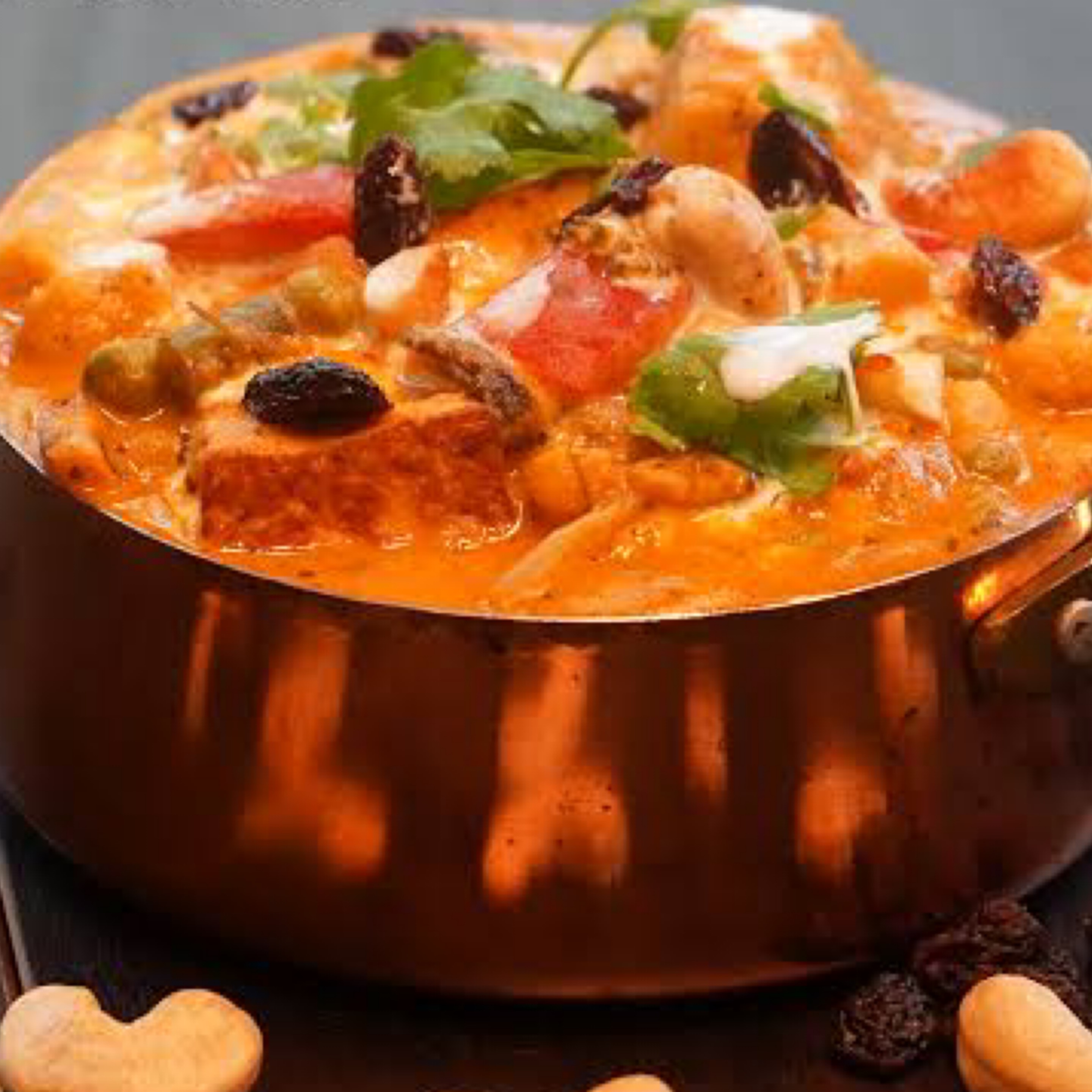 Lamb/Goat cooked in a light creamy sauce, finished with coconut milk and cashew paste