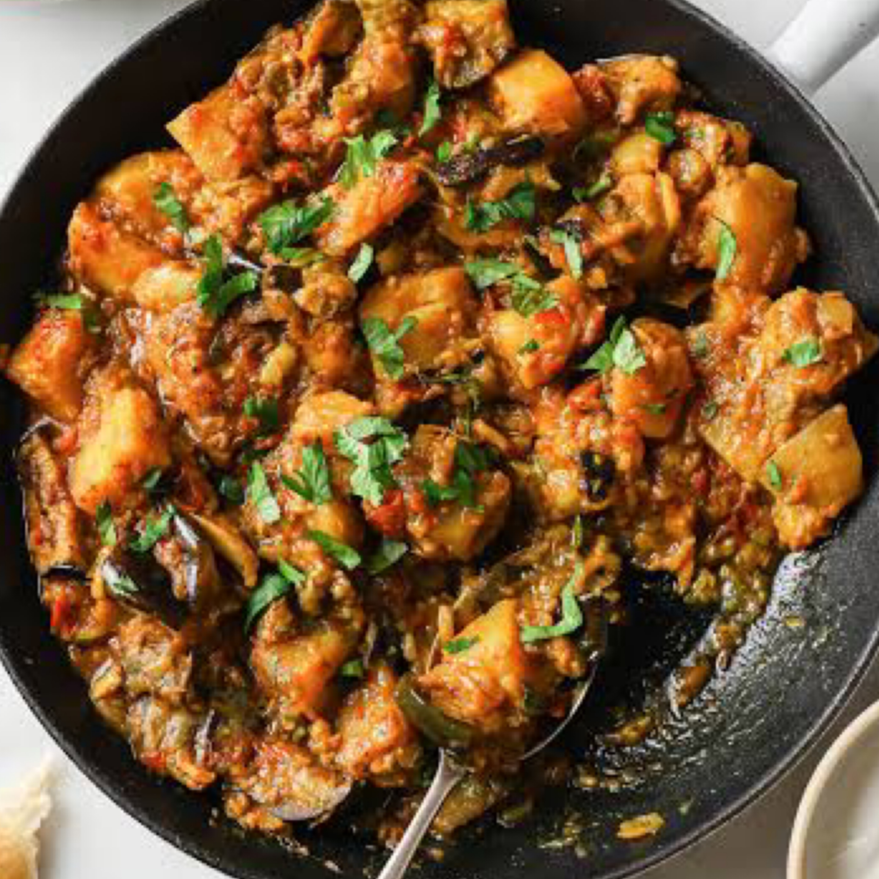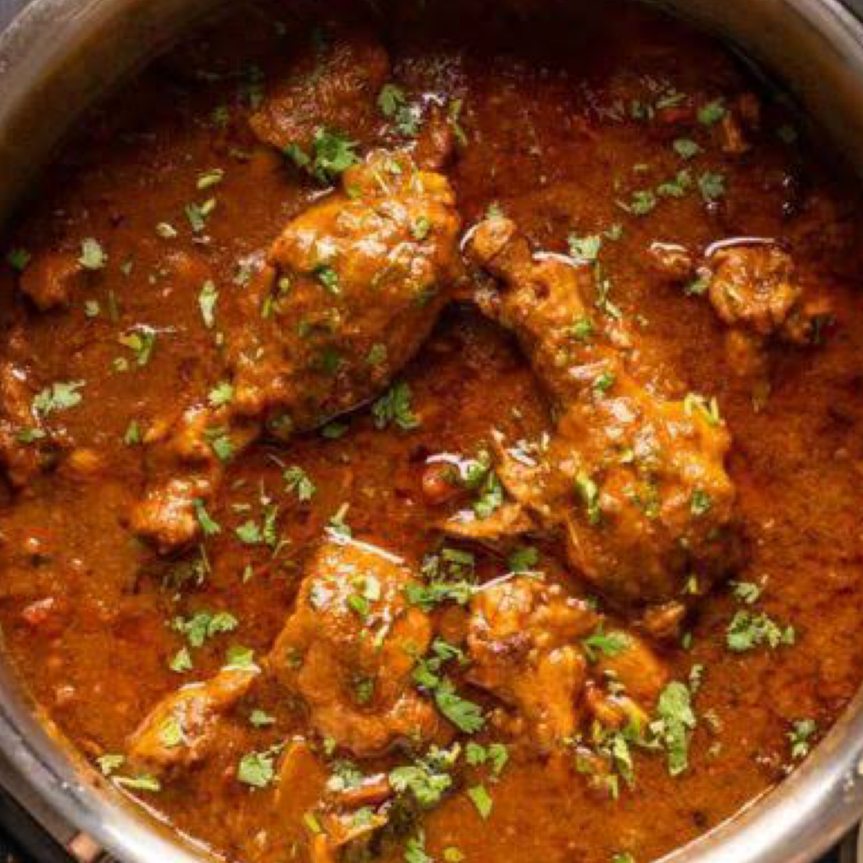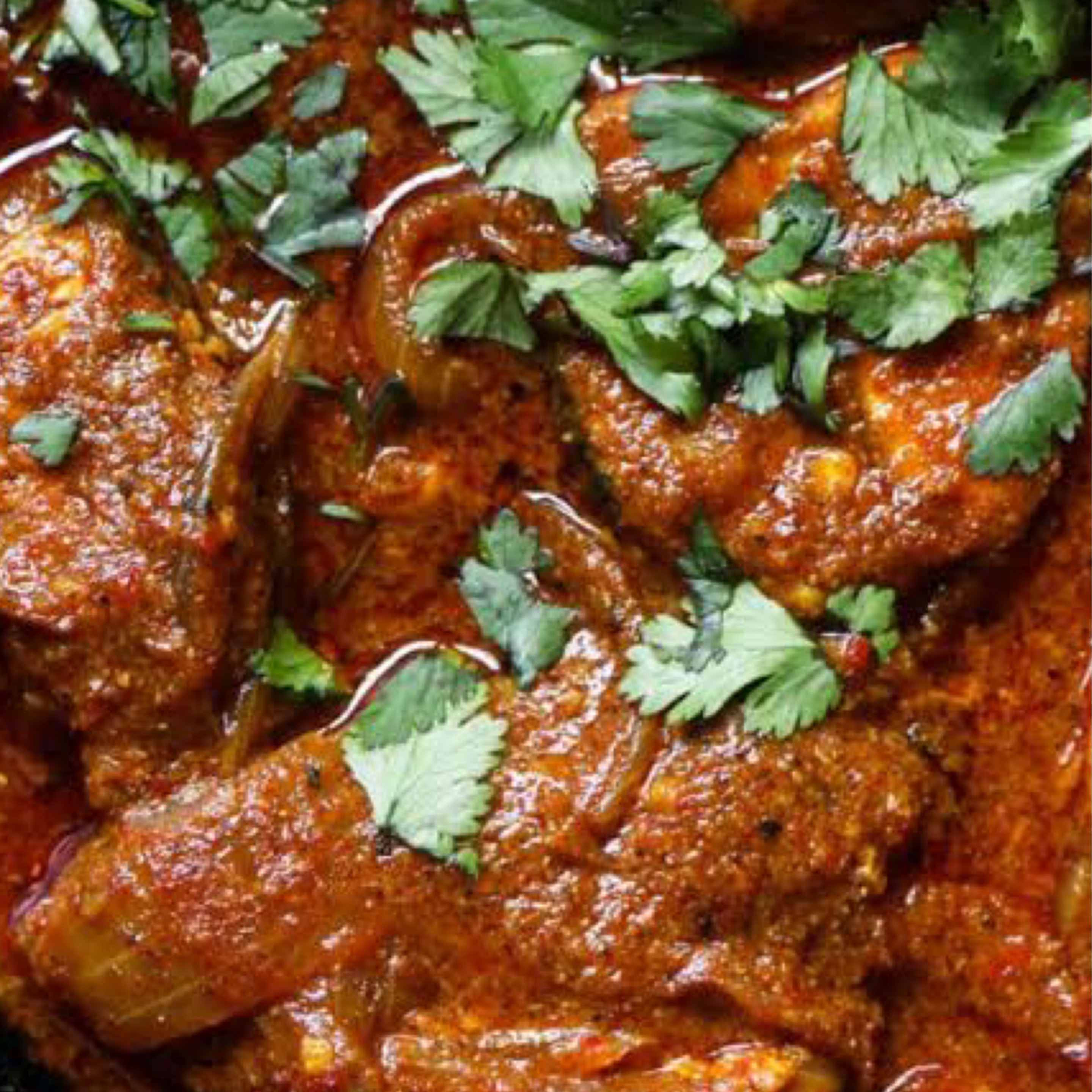 Chicken stewed in an onion and tomato based sauce, then flavoured with a variety of spices.