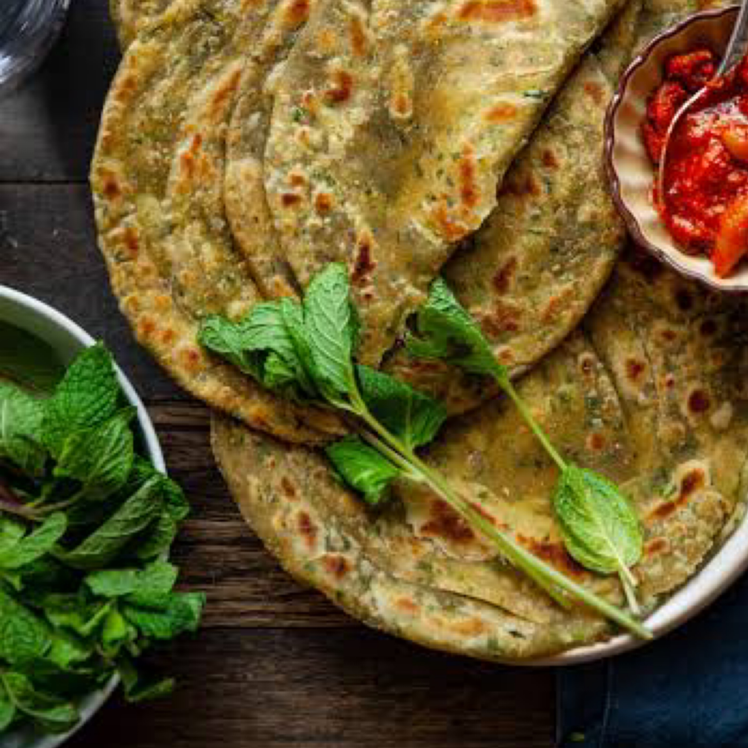 Luxurious mix fresh mint, spices & herbs stuffed in wholemeal flour bread and cooked to perfection.