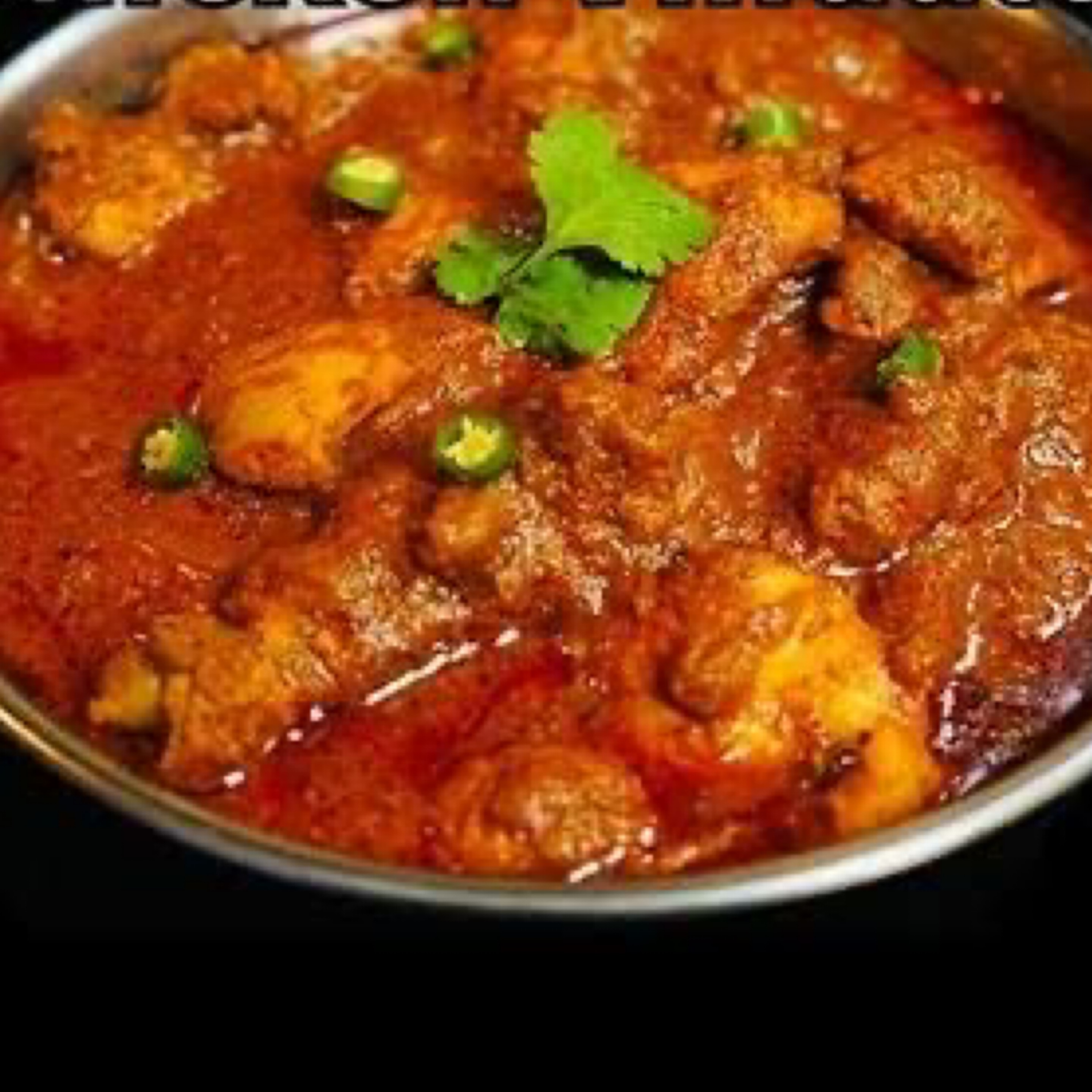Chicken cooked in a red tomato-based sauce with freshly ground spices and capsicum