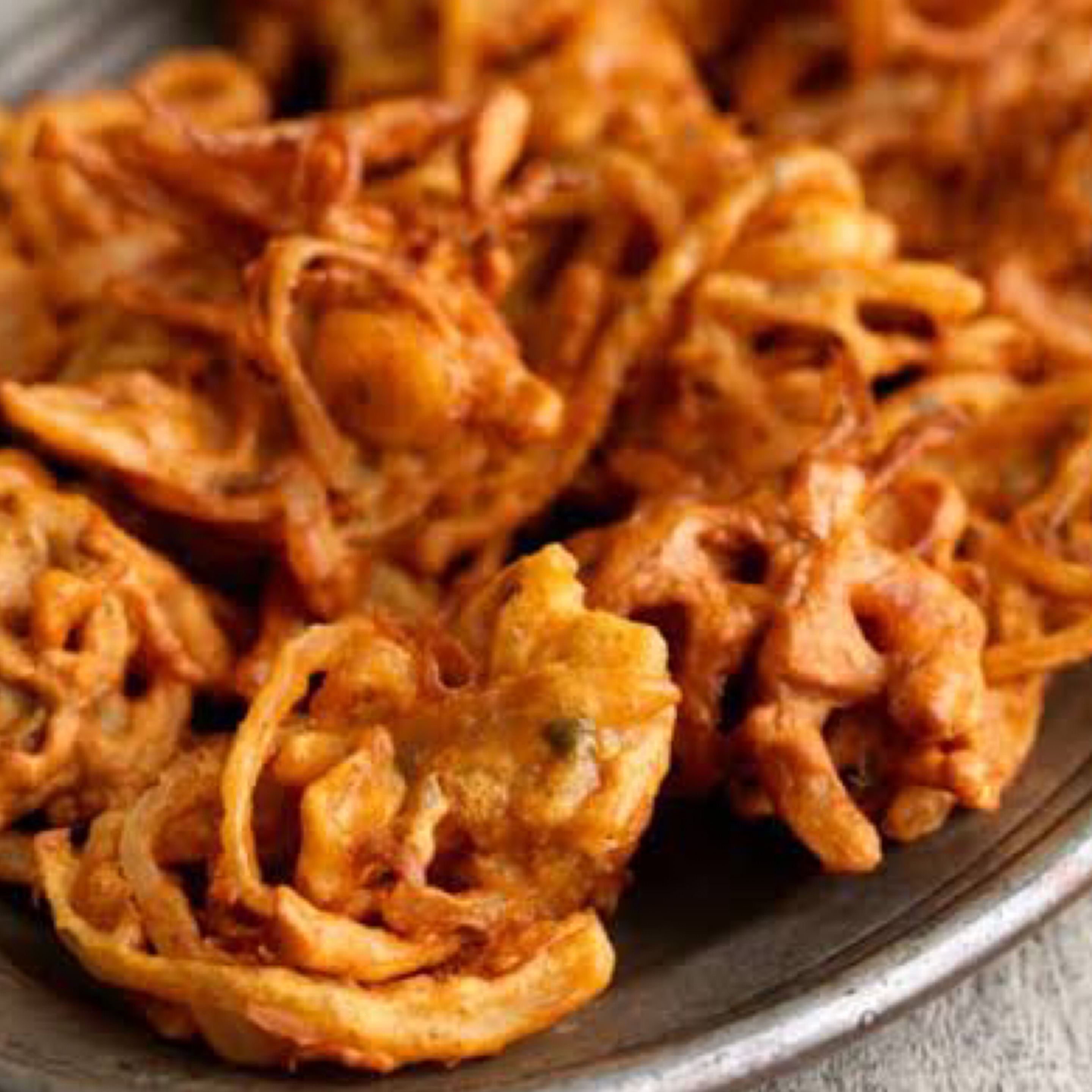 Onion rings, coated in a chickpea batter and fried