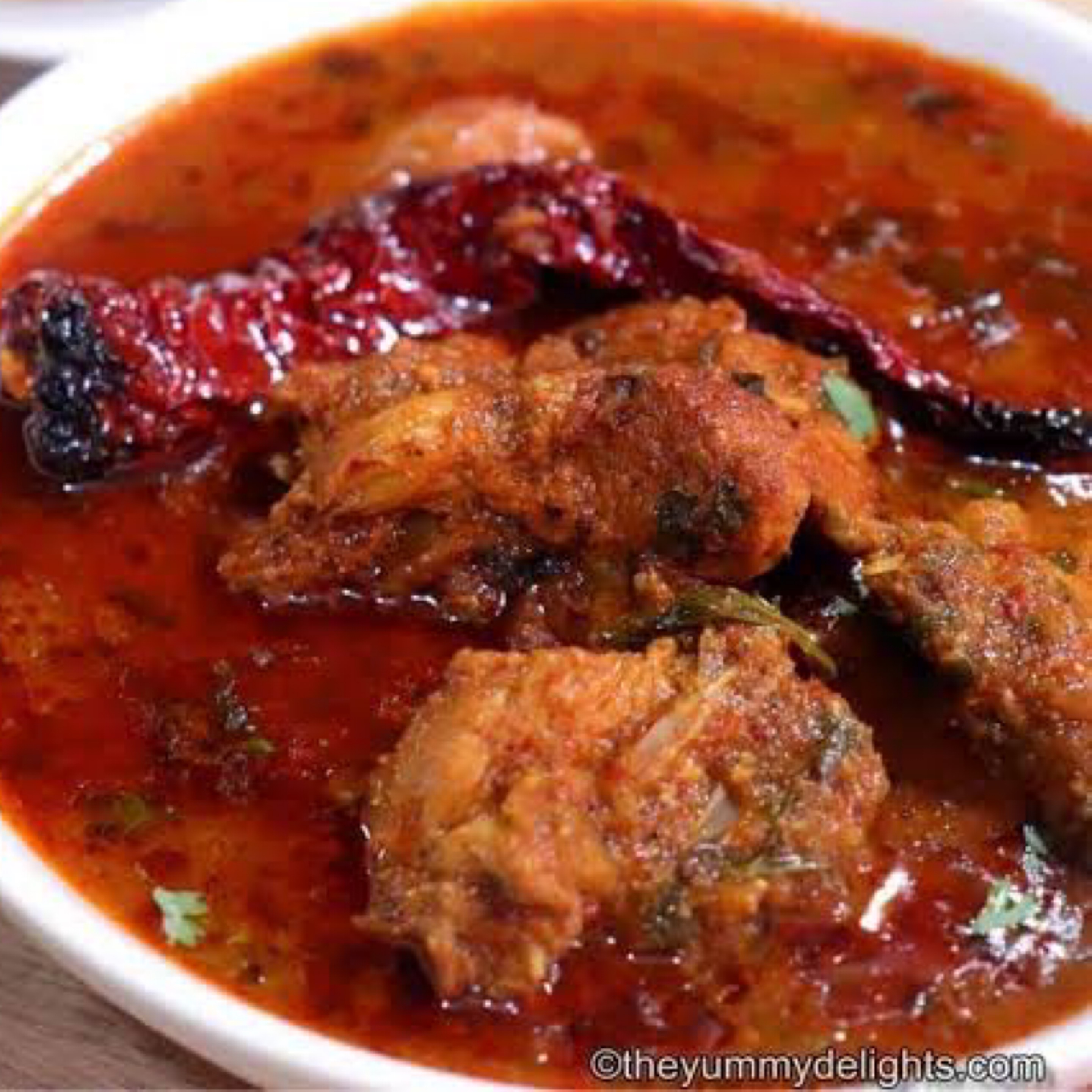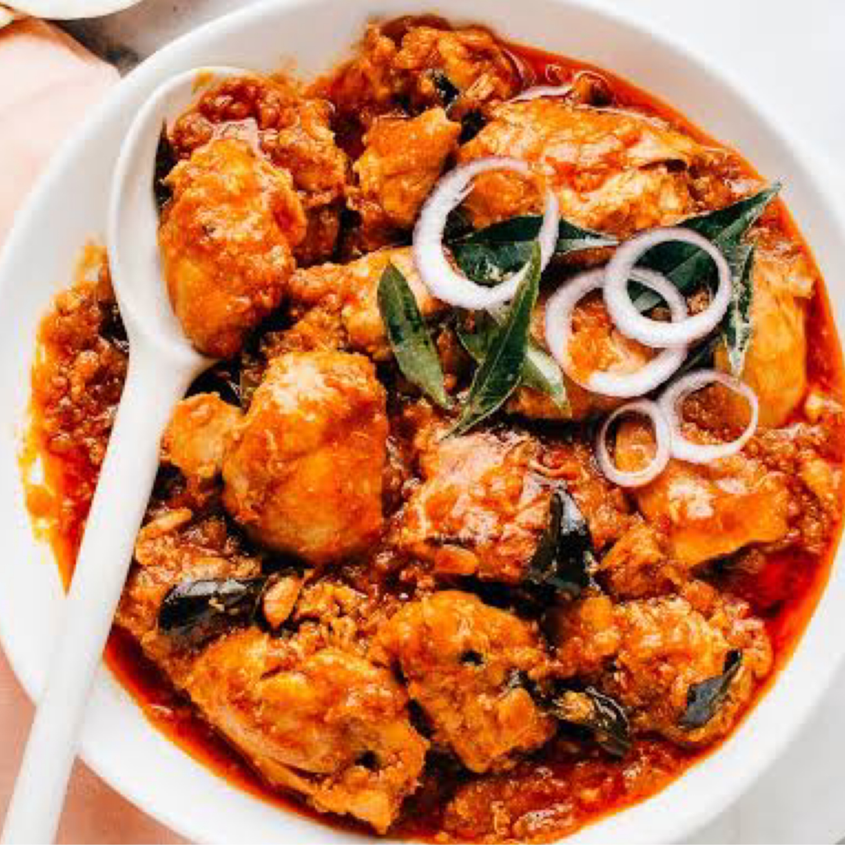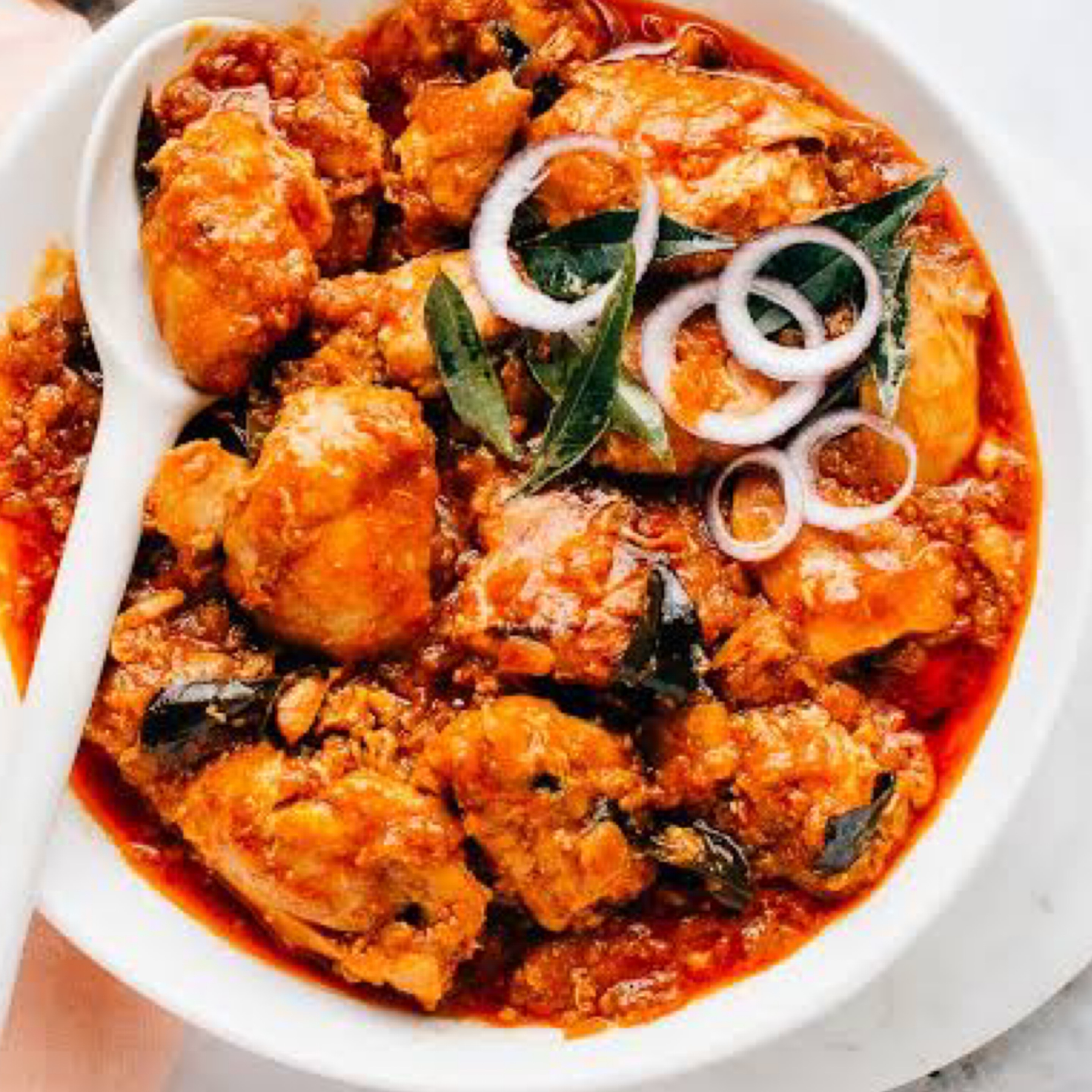 A delicious chicken curry cooked in onion and tomato gravy with fresh spices