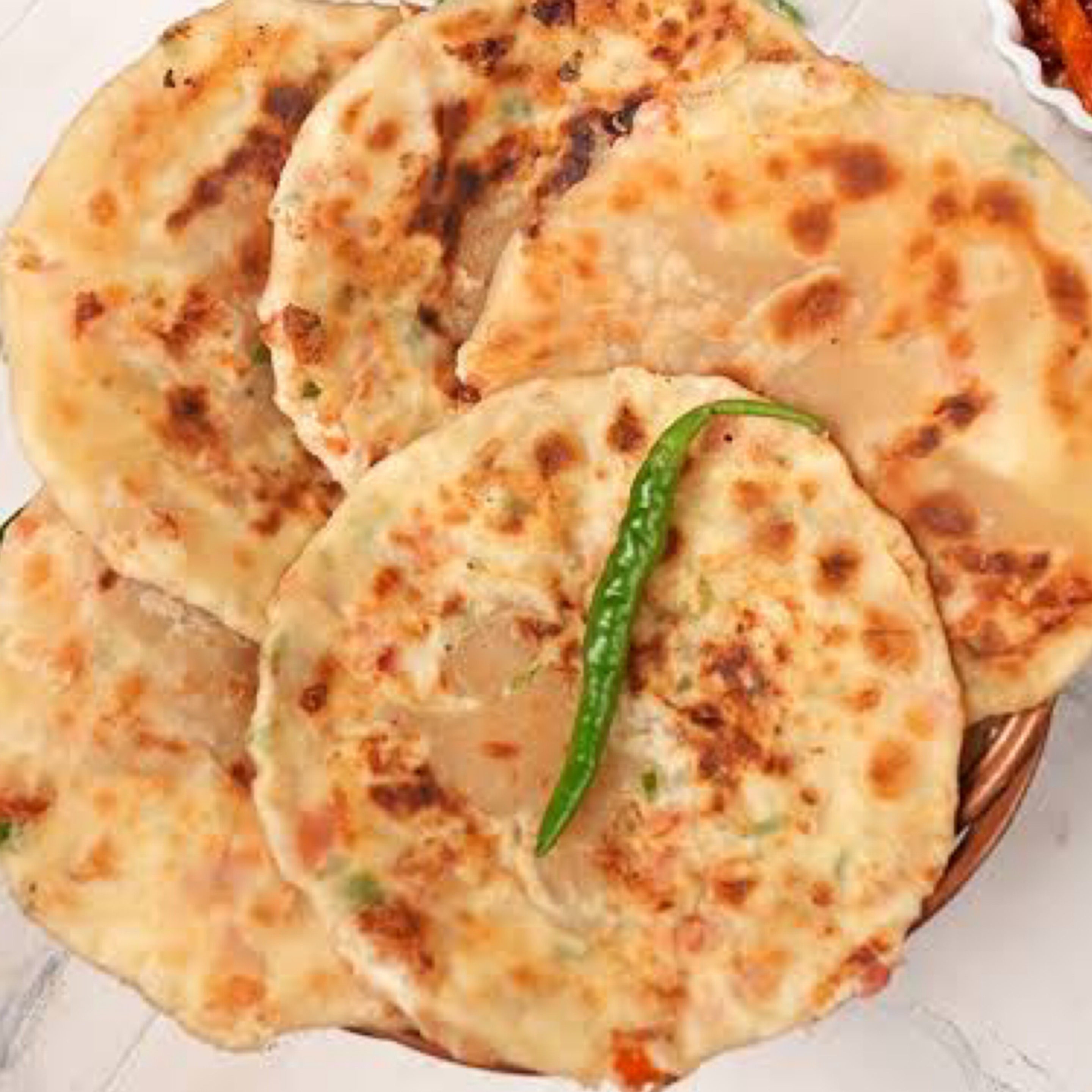 Luxurious mix of mashed potatoes, green chilli and a secret blend of masala spices stuffed in Naan bread and cooked to perfection.