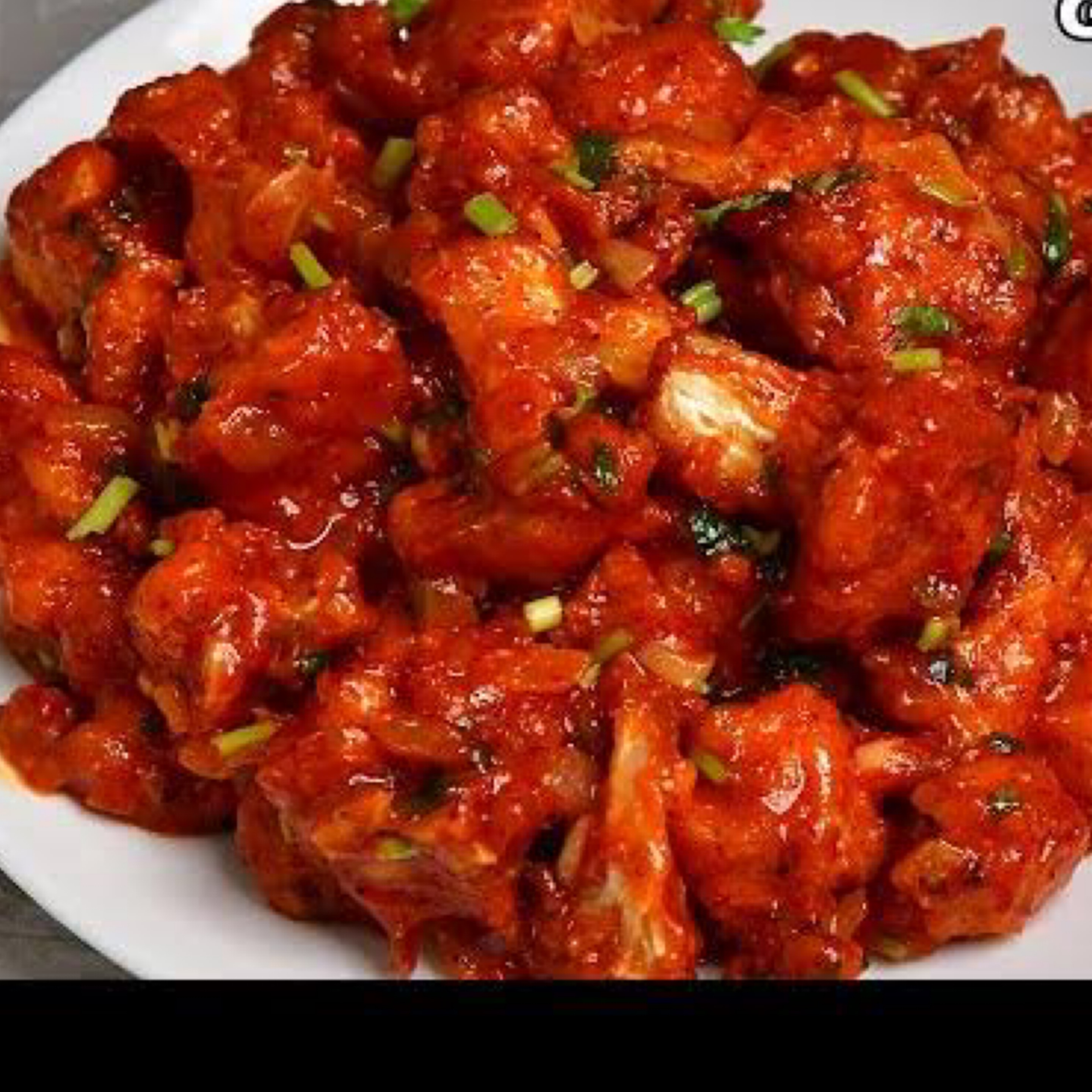 Batter-fried cauliflower tossed in chilli sauce