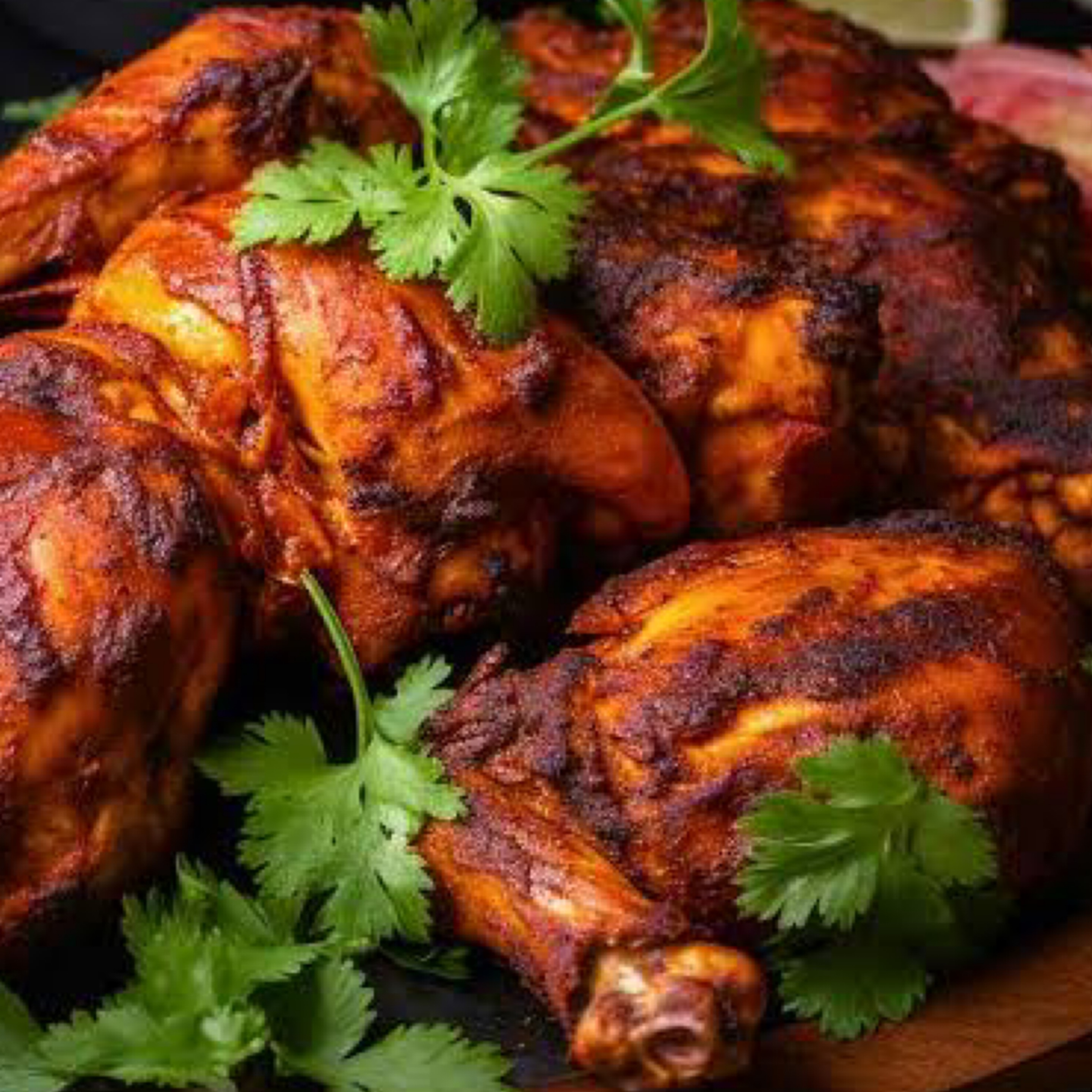 Chicken made with a spicy recipe using cayenne pepper and dried chillies