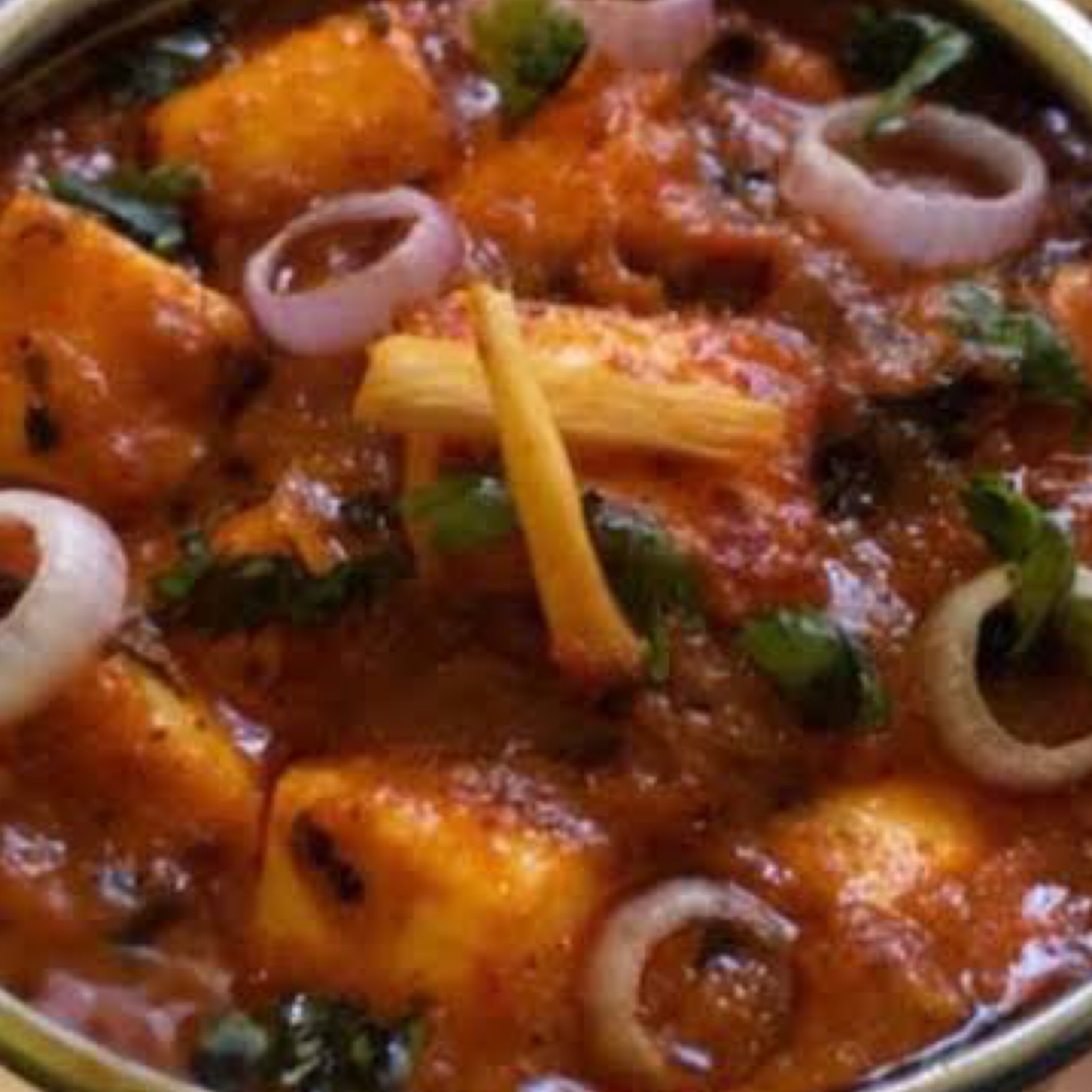 Indian cottage cheese prepared in ginger tomato sauce then tossed with sliced onion, capsicum and tomatoes