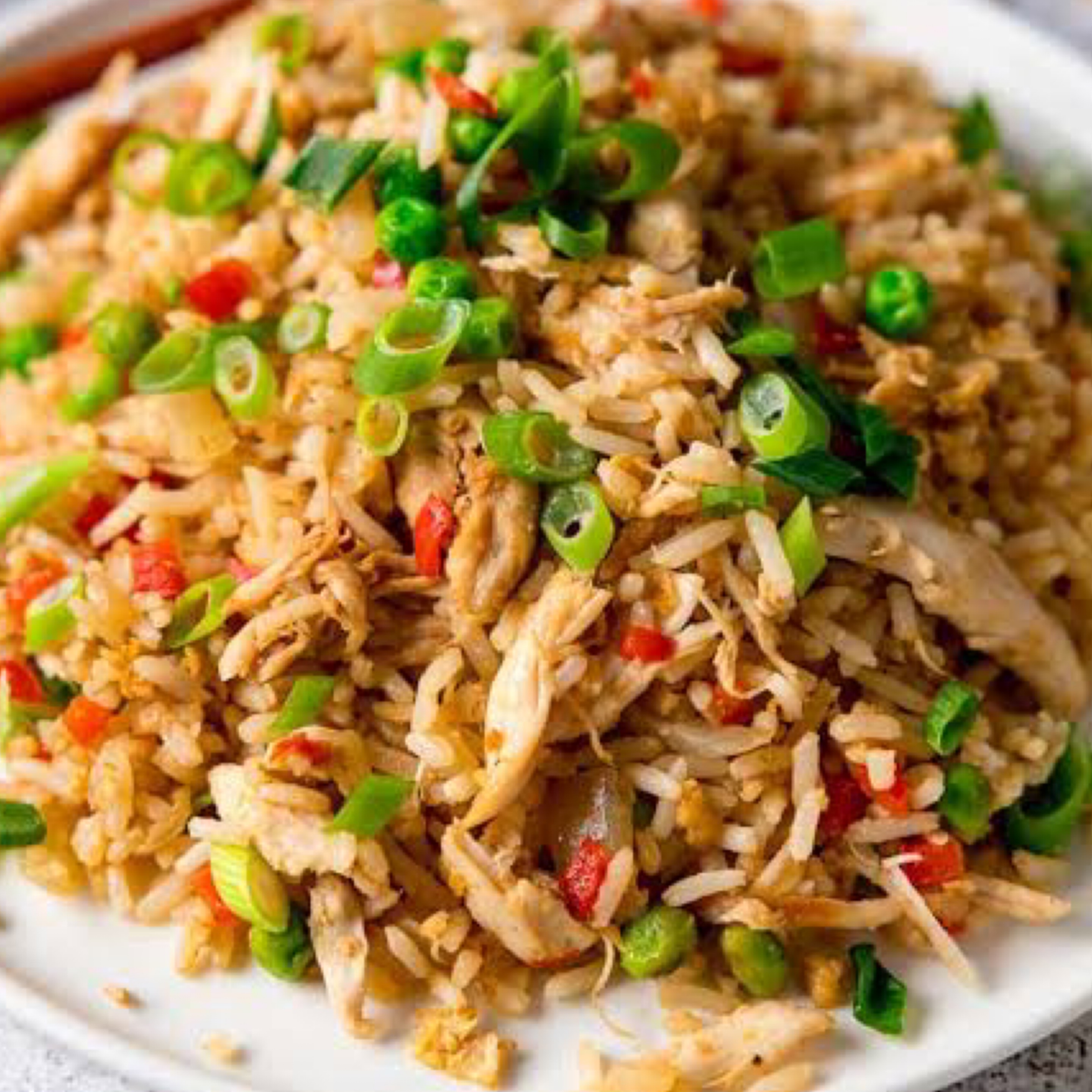 Wok-tossed rice, chicken, and vegetables