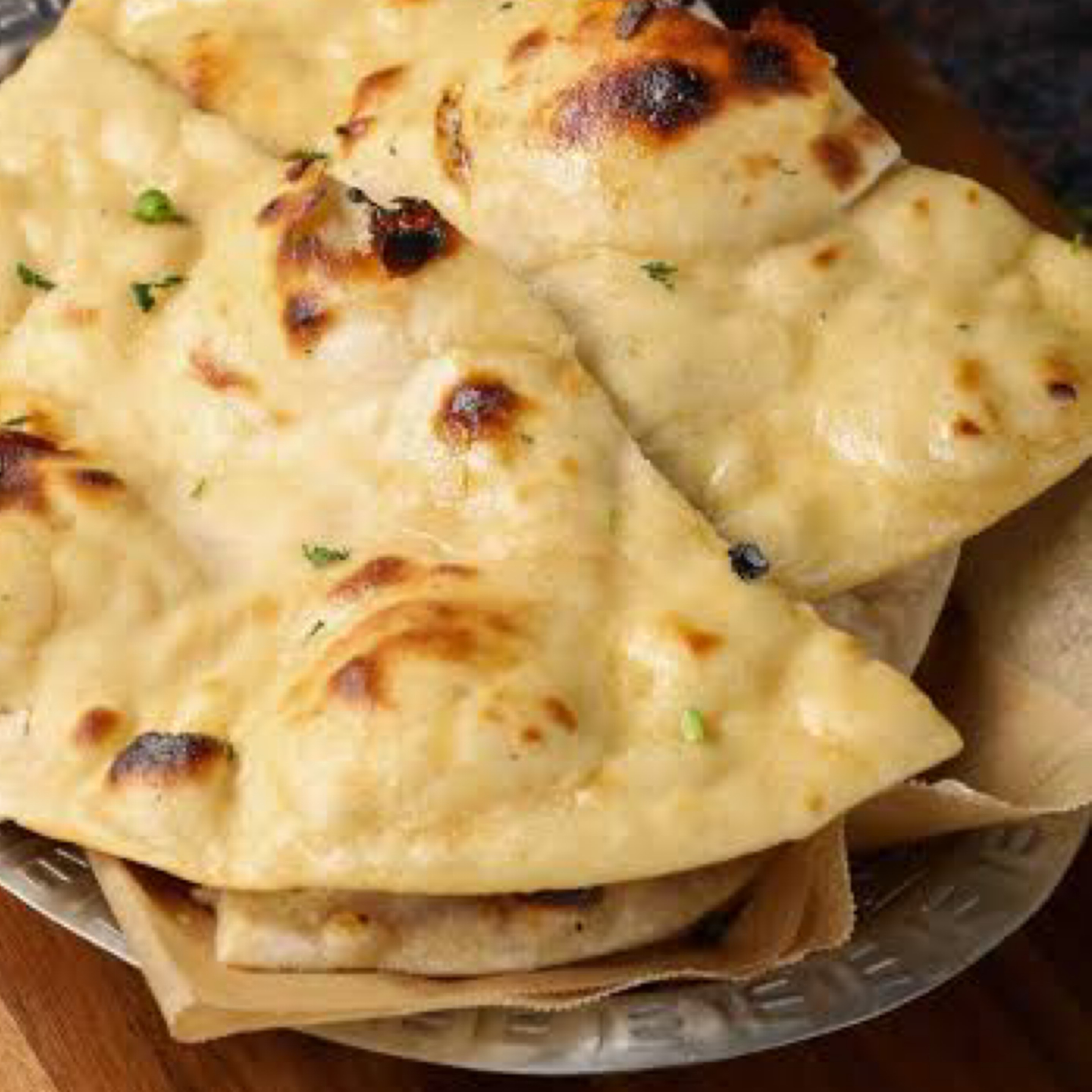 Naan lavishly flavoured with garlic butter