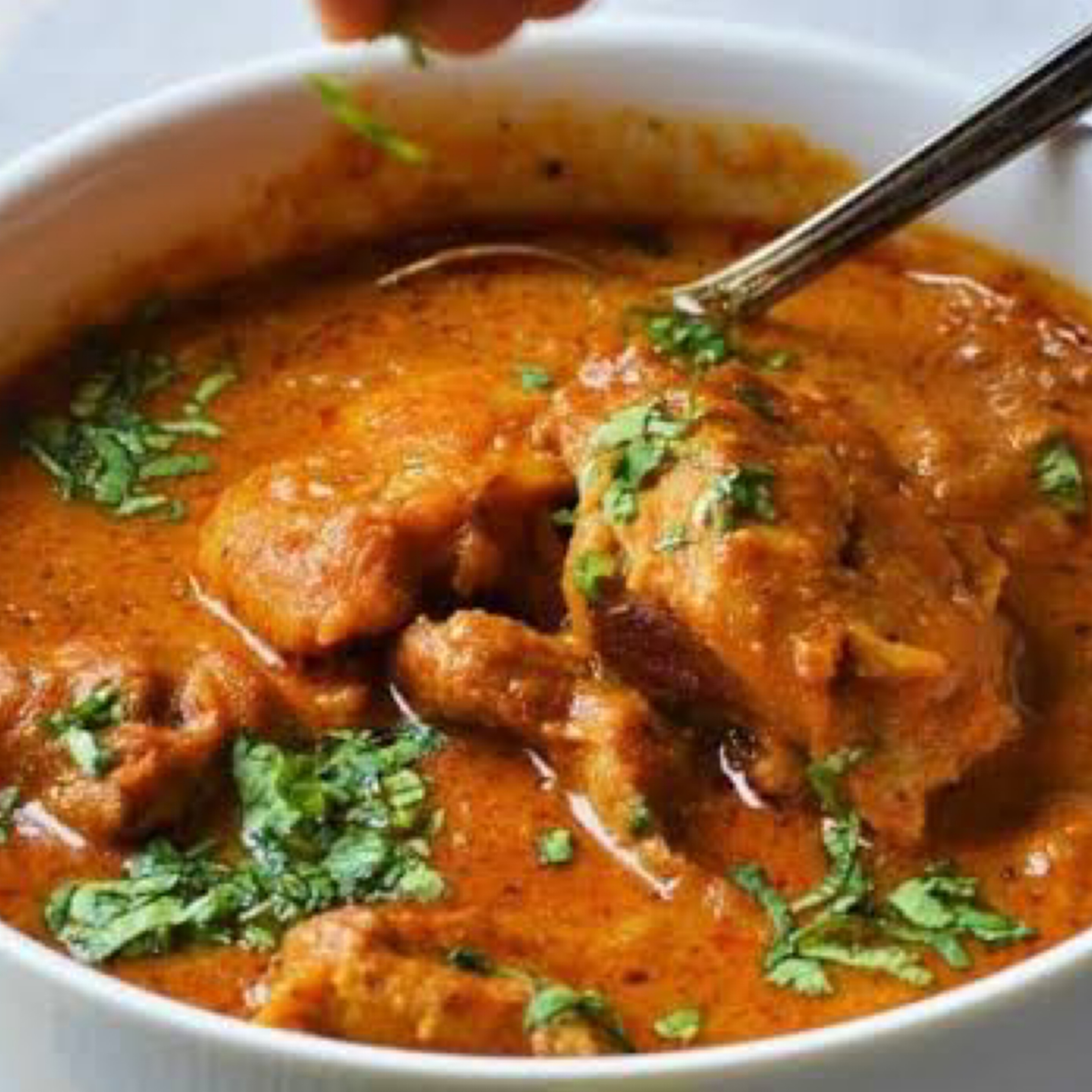 Pieces of lamb simmered with yoghurt and spices until tender